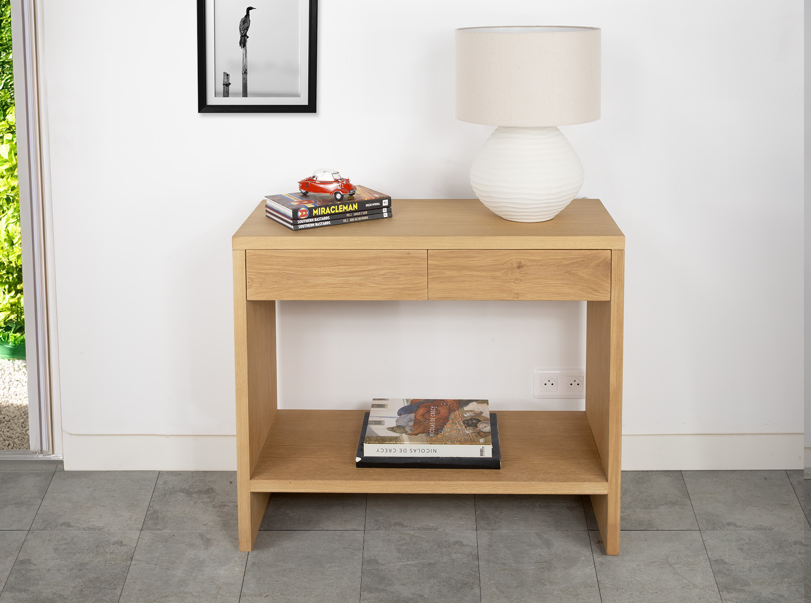 Console 2 tiroirs réalisée en chêne Ligne Contemporaine