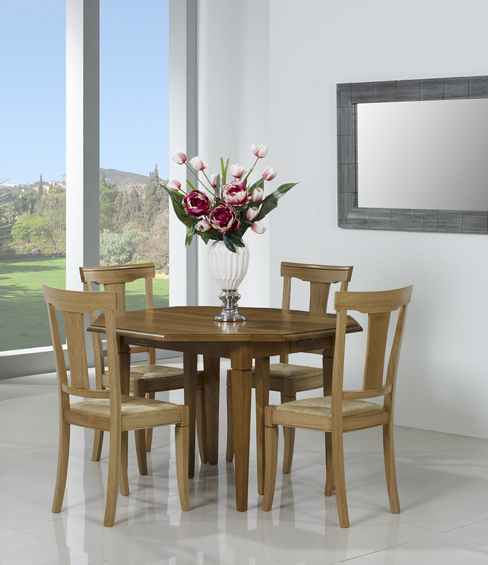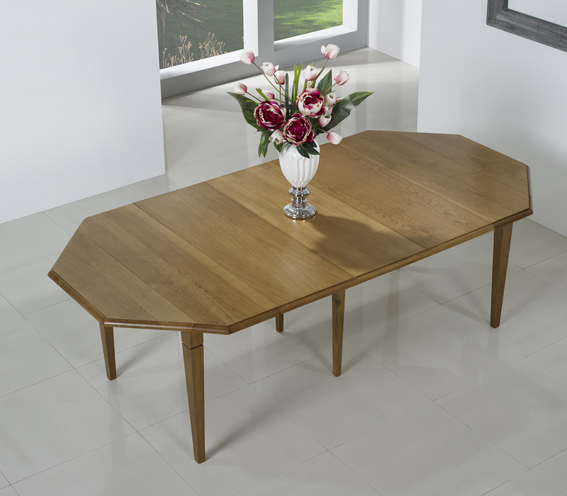 Table à volets octogonale 120x120 en Chêne Massif 6 pieds fuseaux 4 allonges de 40 cm
