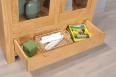Finition : chêne naturel ciré et lustré, mettant en valeur le veinage du bois